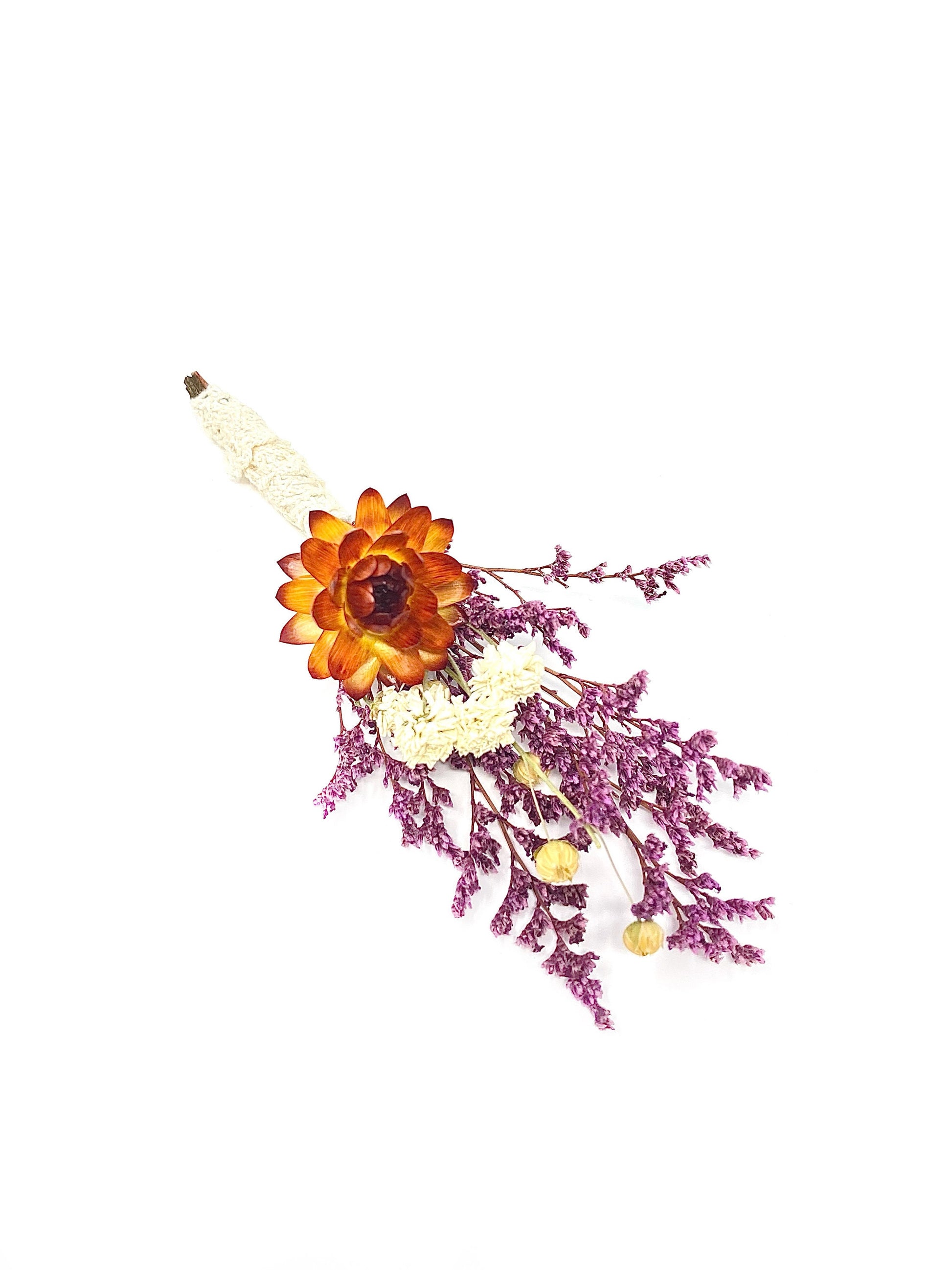 Boutonniere, Dried Flowers, Wedding Accessories, Preserved Floral, Bridal, Strawflower, Purple and Orange, Caspia