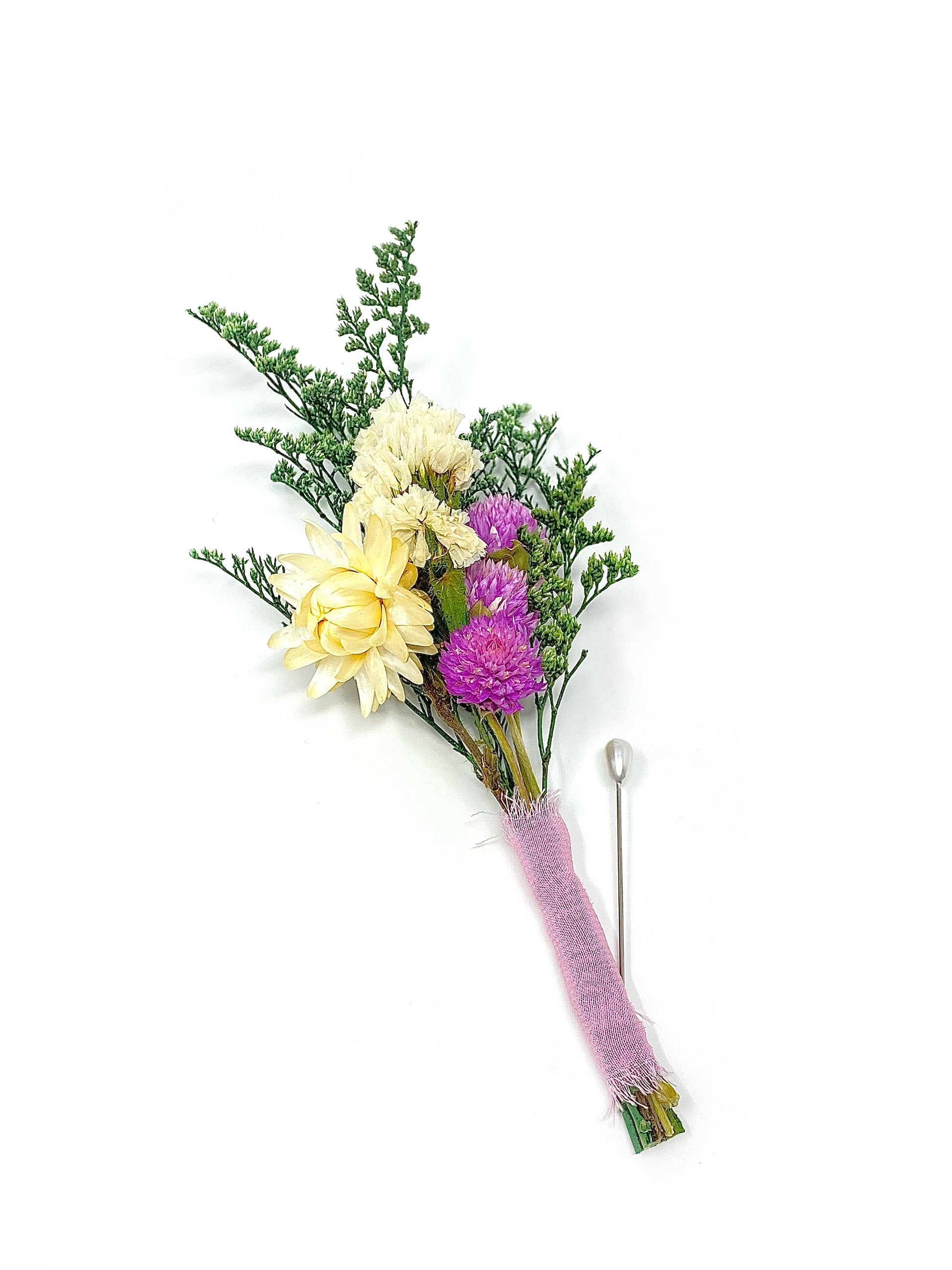 Boutonniere, Wedding Accessories, Dried Flowers, Preserved Floral, Bridal, Decor, Pink and White, Strawflowers, Green