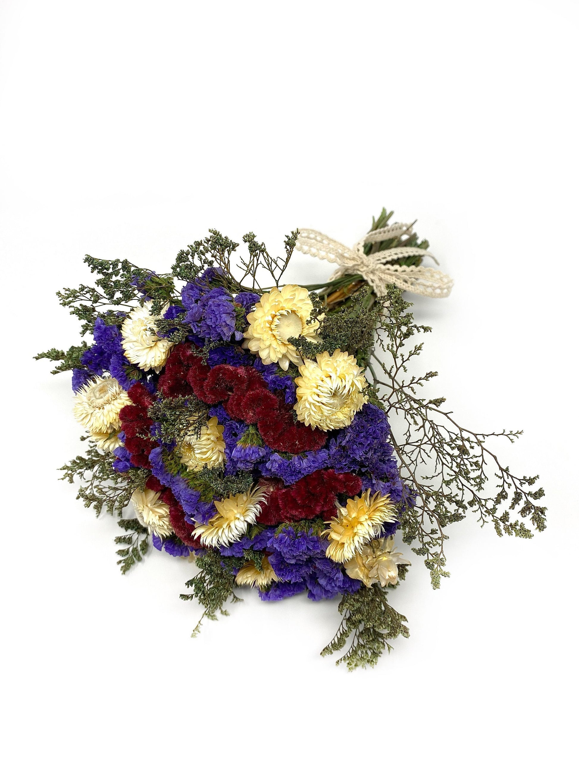 Dried Bouquet, Wedding Bouquet, Preserved Floral, Decoration, Bridal, House Decor, White and Green, Purple, Red, Strawflowers