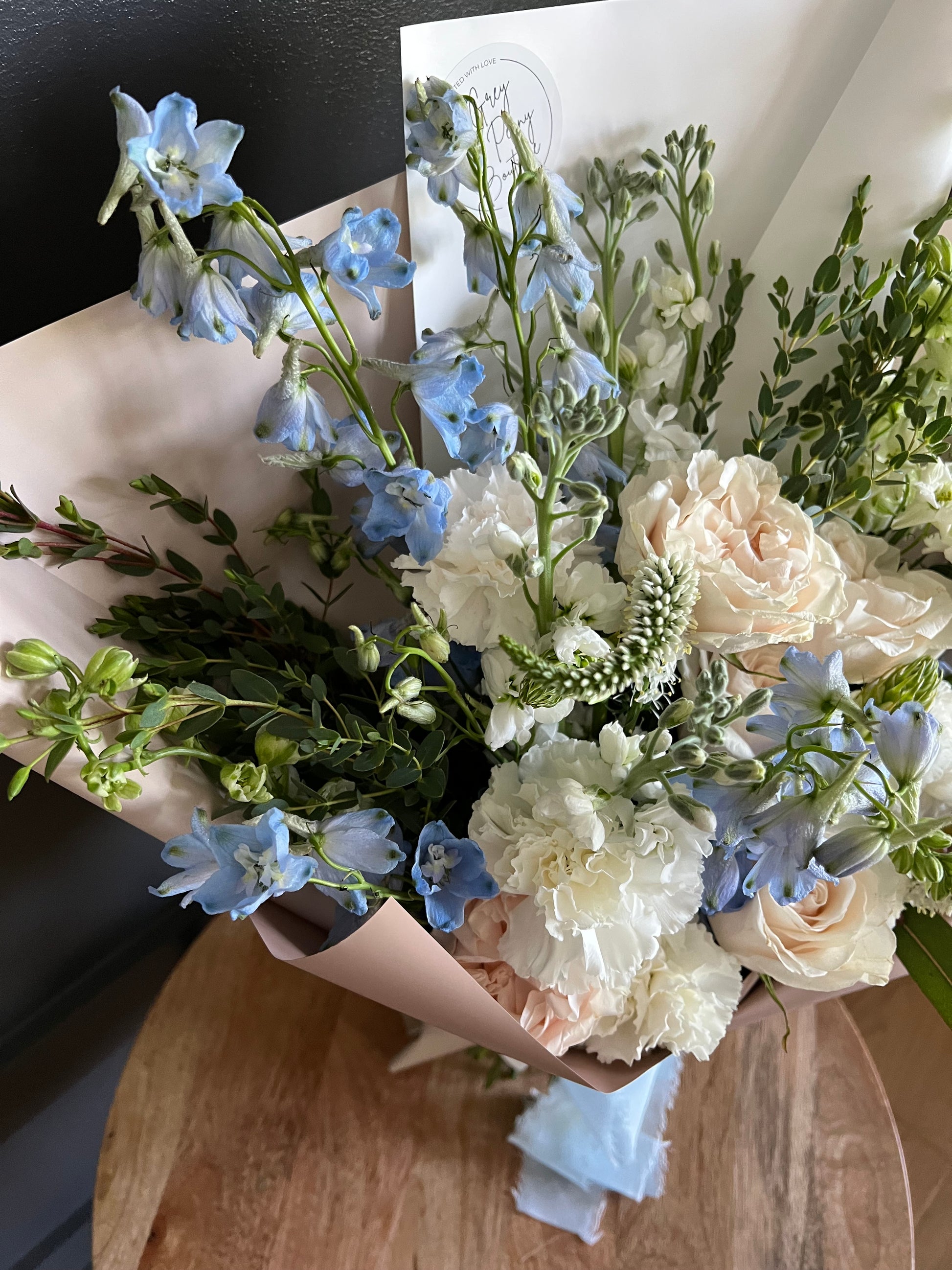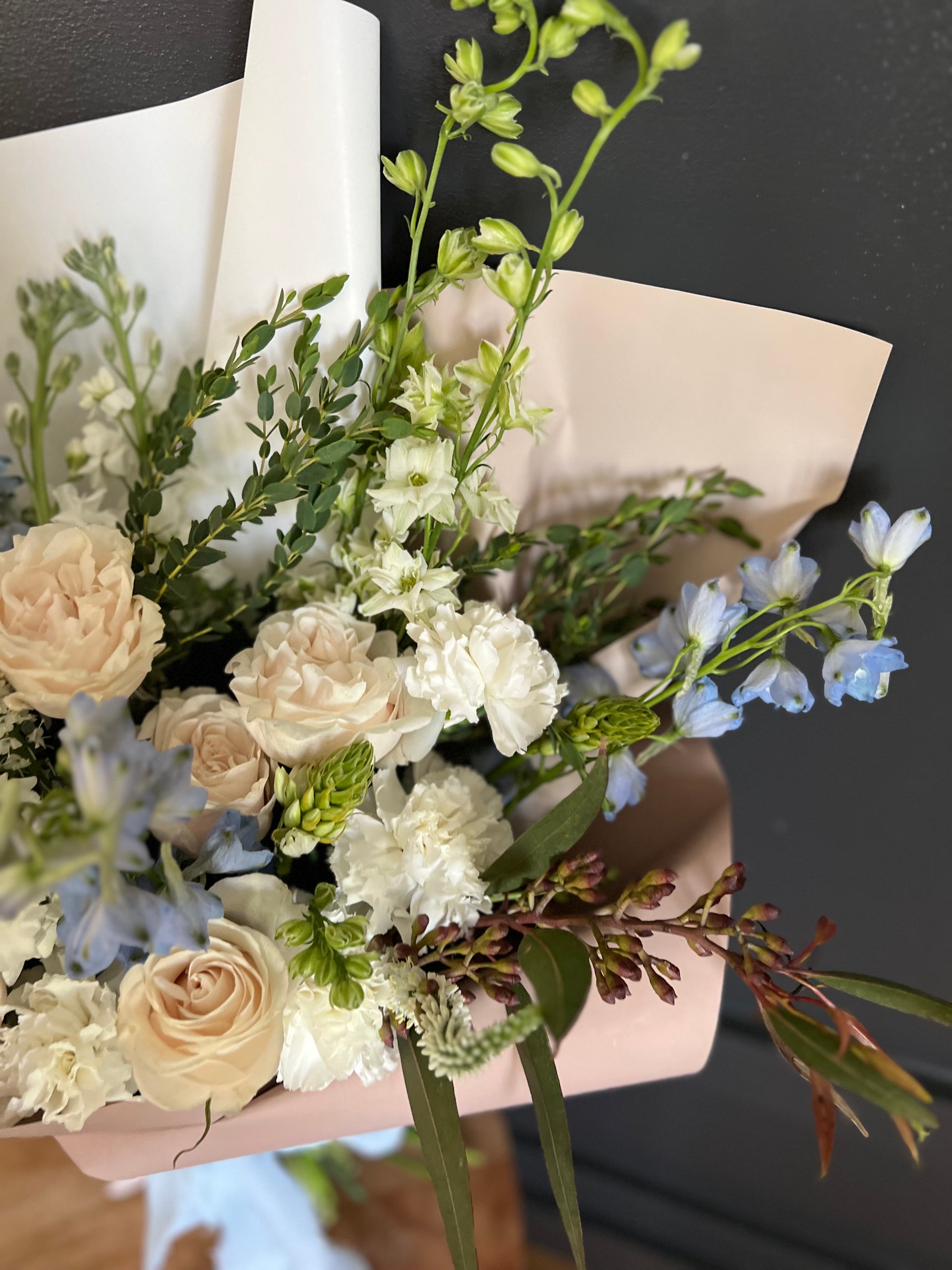 Each bouquet is carefully crafted with premium, seasonal blooms, wrapped in elegant paper and tied with a delicate ribbon for the perfect finishing touch. Whether it’s a small gesture or a grand statement, our bouquets are designed to make hearts bloom!