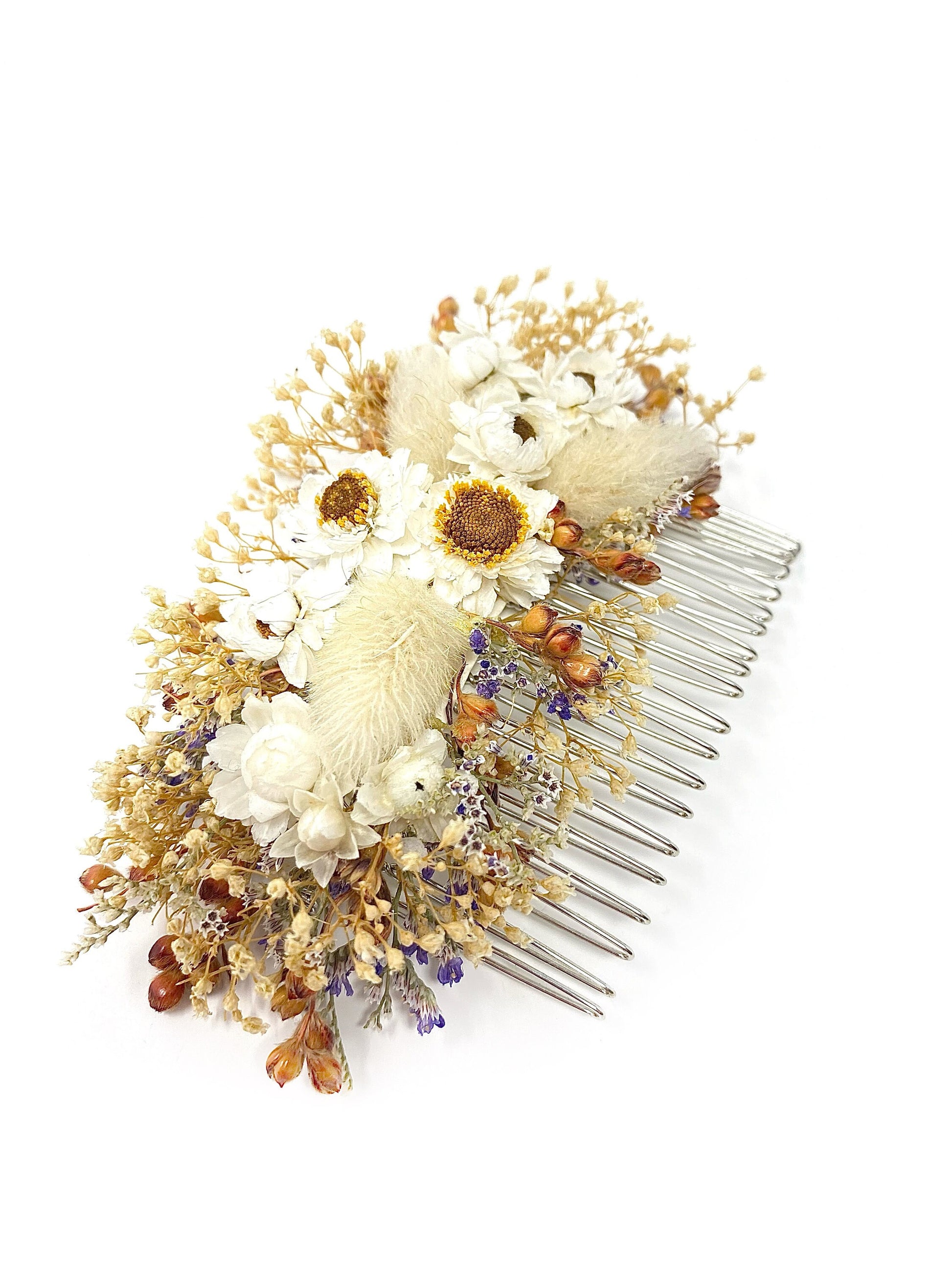Hair Comb, Dried Flowers, Hair Pins, Bridal, Hair Accessories, Wedding Accessories, Ammobium, Bunny Tails, Preserved Floral, Caspia