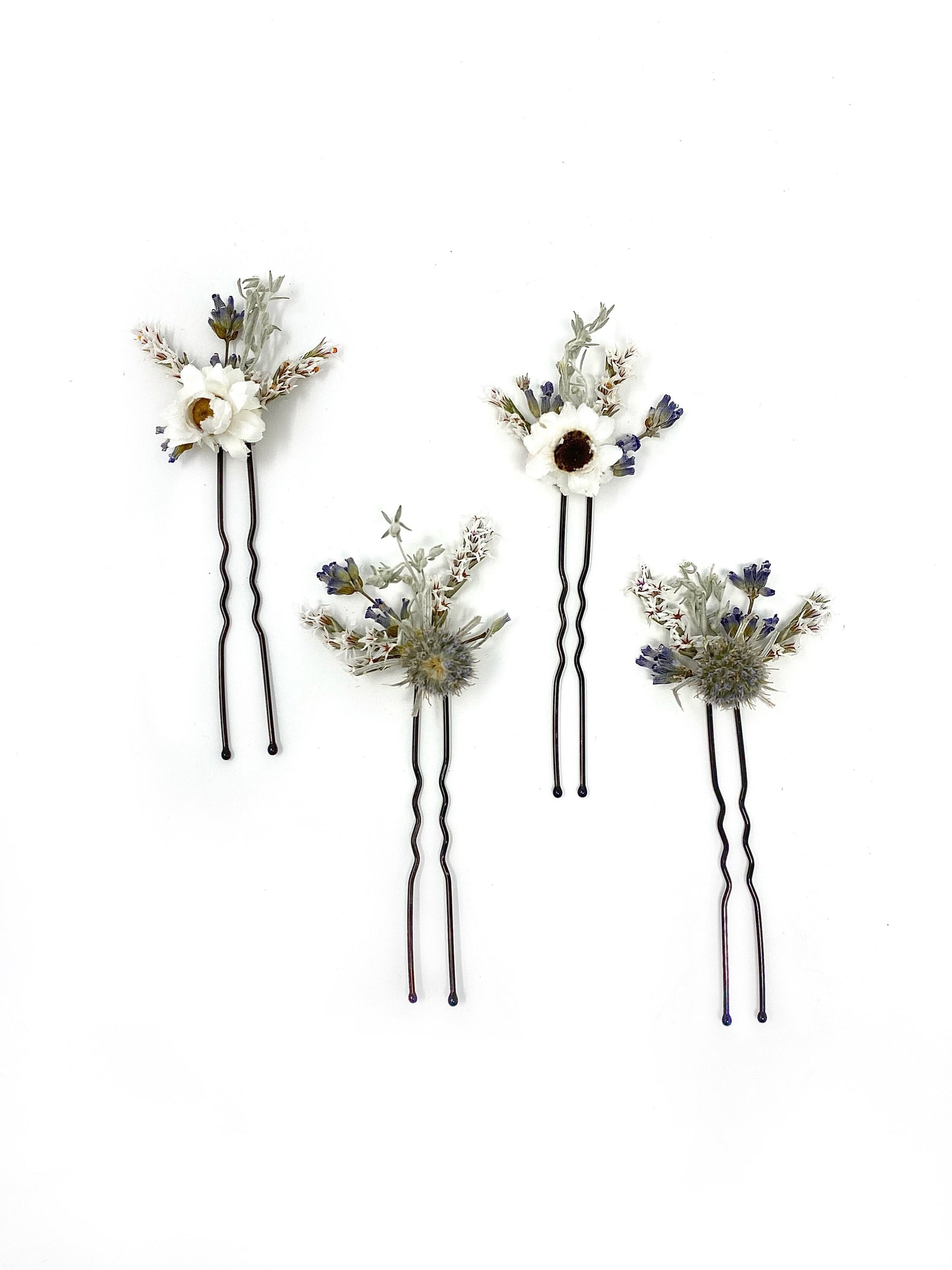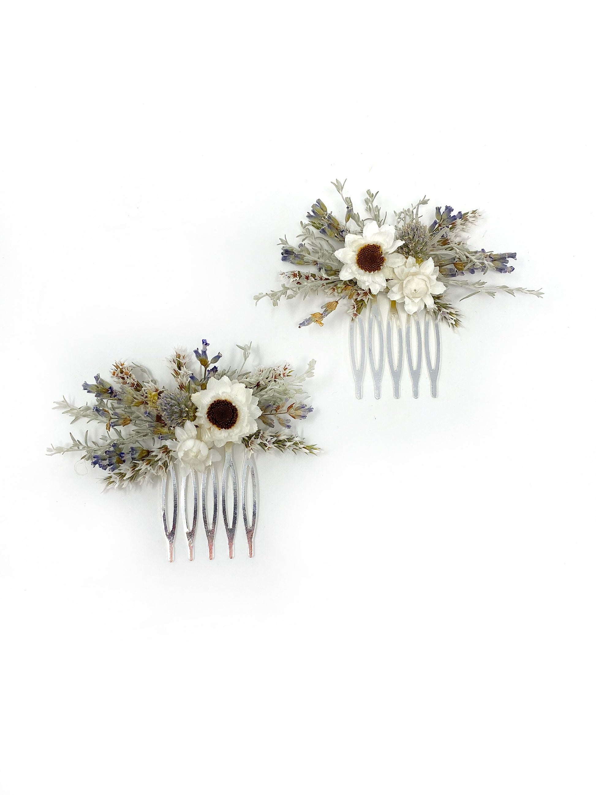 Hair Comb, Hair Pins, Dried flowers, Preserved, Floral Comb, Clip, Wedding, Corsage, Prom, Bridal, Blue, Winter, Spring, Natural, White