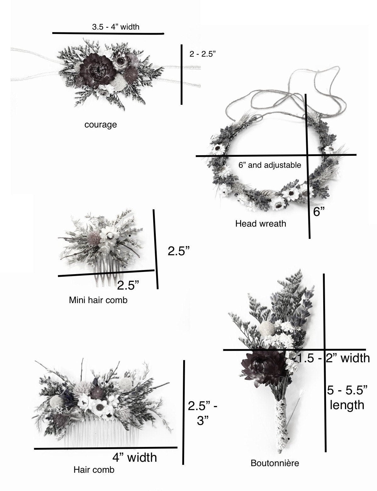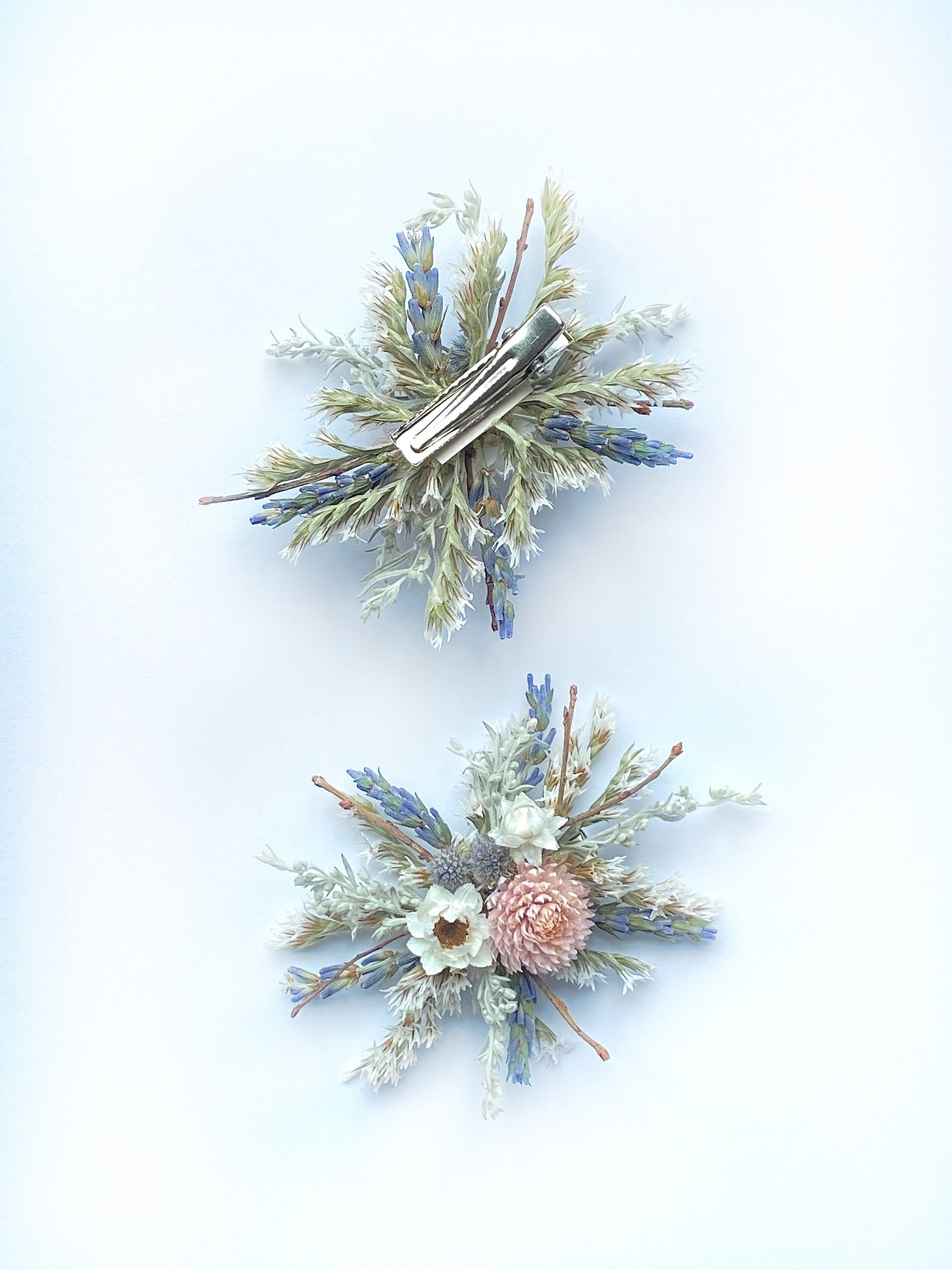 Are you looking for the perfect hairpiece? Whether it is for your special day, photoshoot, or just for fun, we have created the most perfect hair comb or 4 hairpins of your choice! Our dried flower hairpieces are a perfect size and have the prettiest flowers. These hairpieces are secure and will last you a lot longer than just one night. If stored properly they can last over a year.