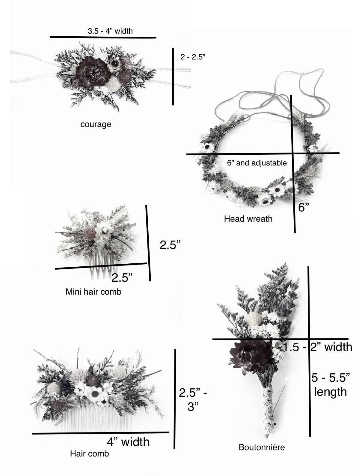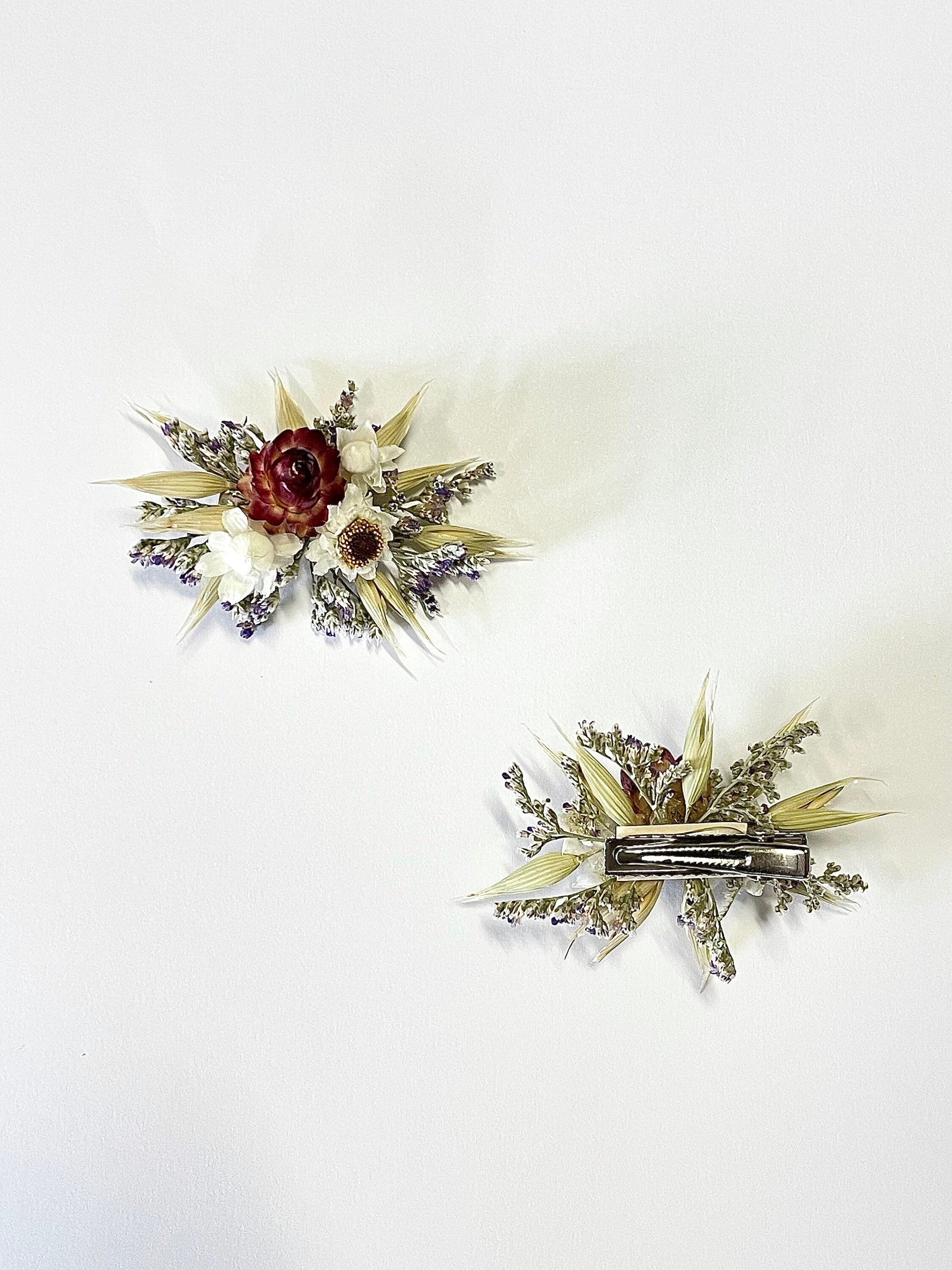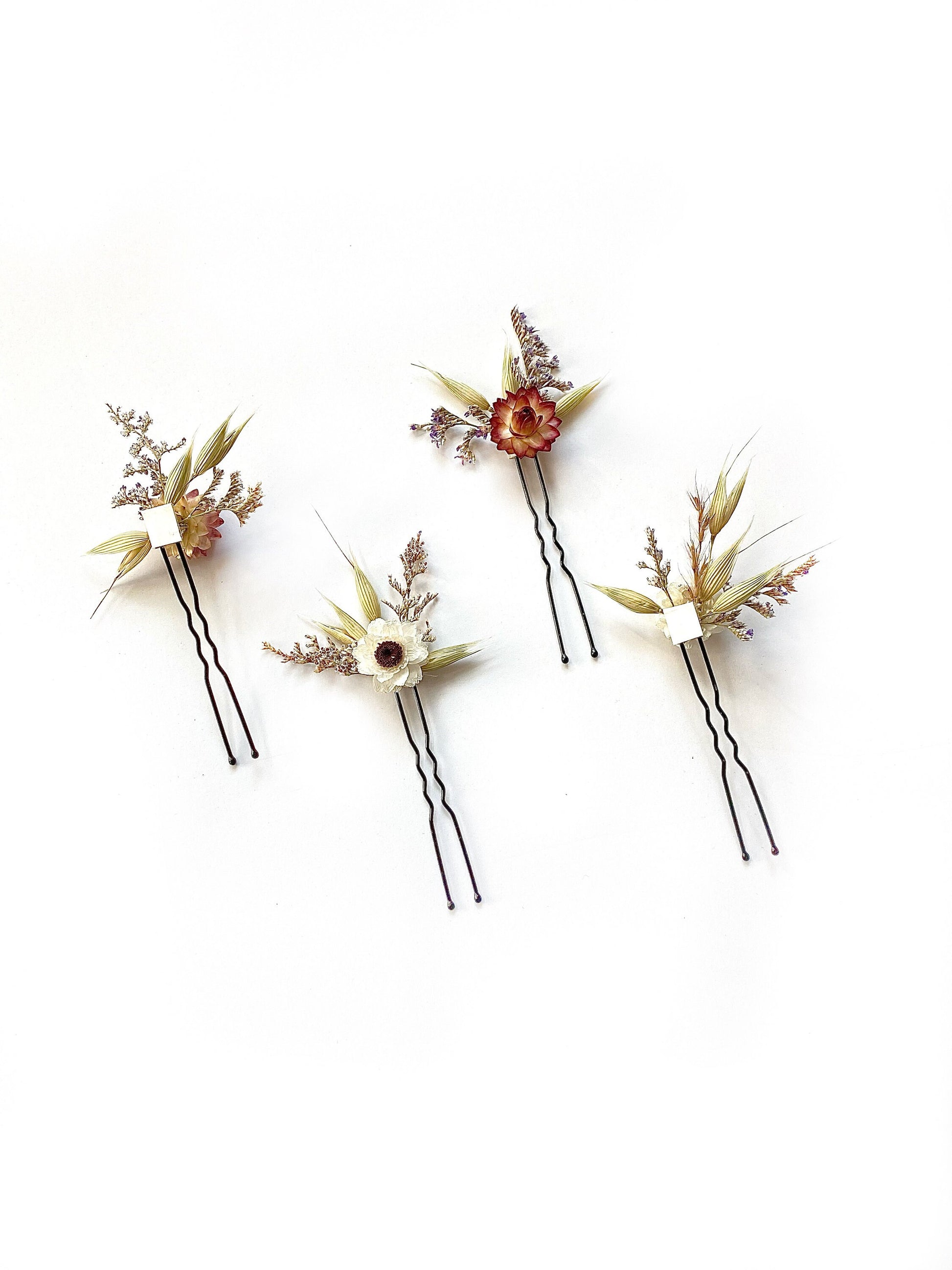 Are you looking for the perfect hairpiece? Whether it is for your special day, photoshoot, or just for fun, we have created the most perfect hair comb or 4 hair pins of your choice! Our dried flower hairpieces are a perfect size and have the prettiest flowers. These hairpieces are secure and will last you a lot longer than just one night. If stored properly they can last over a year.