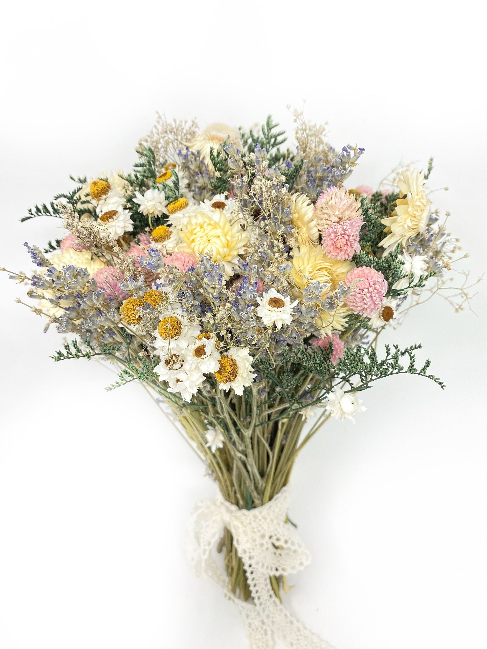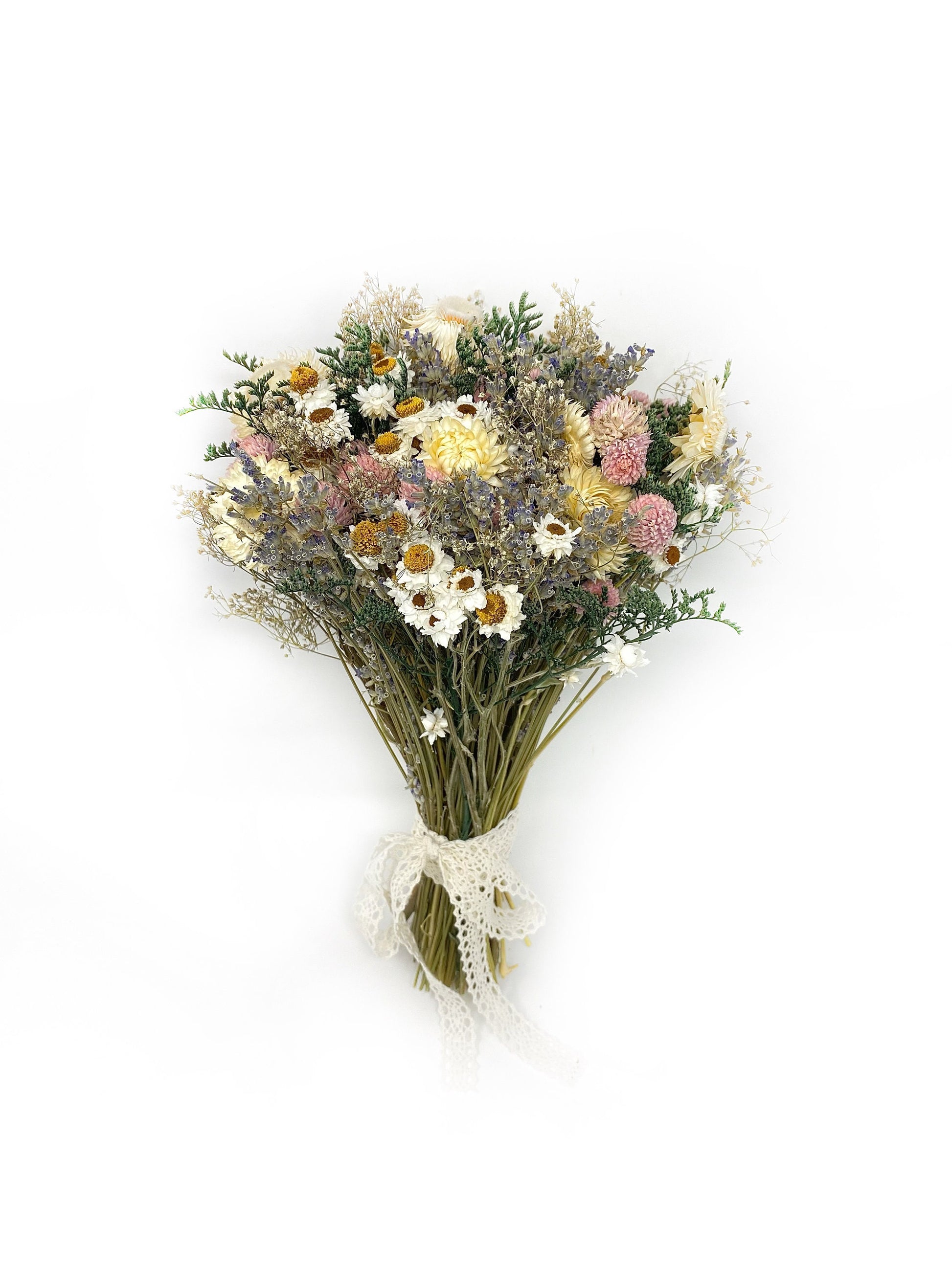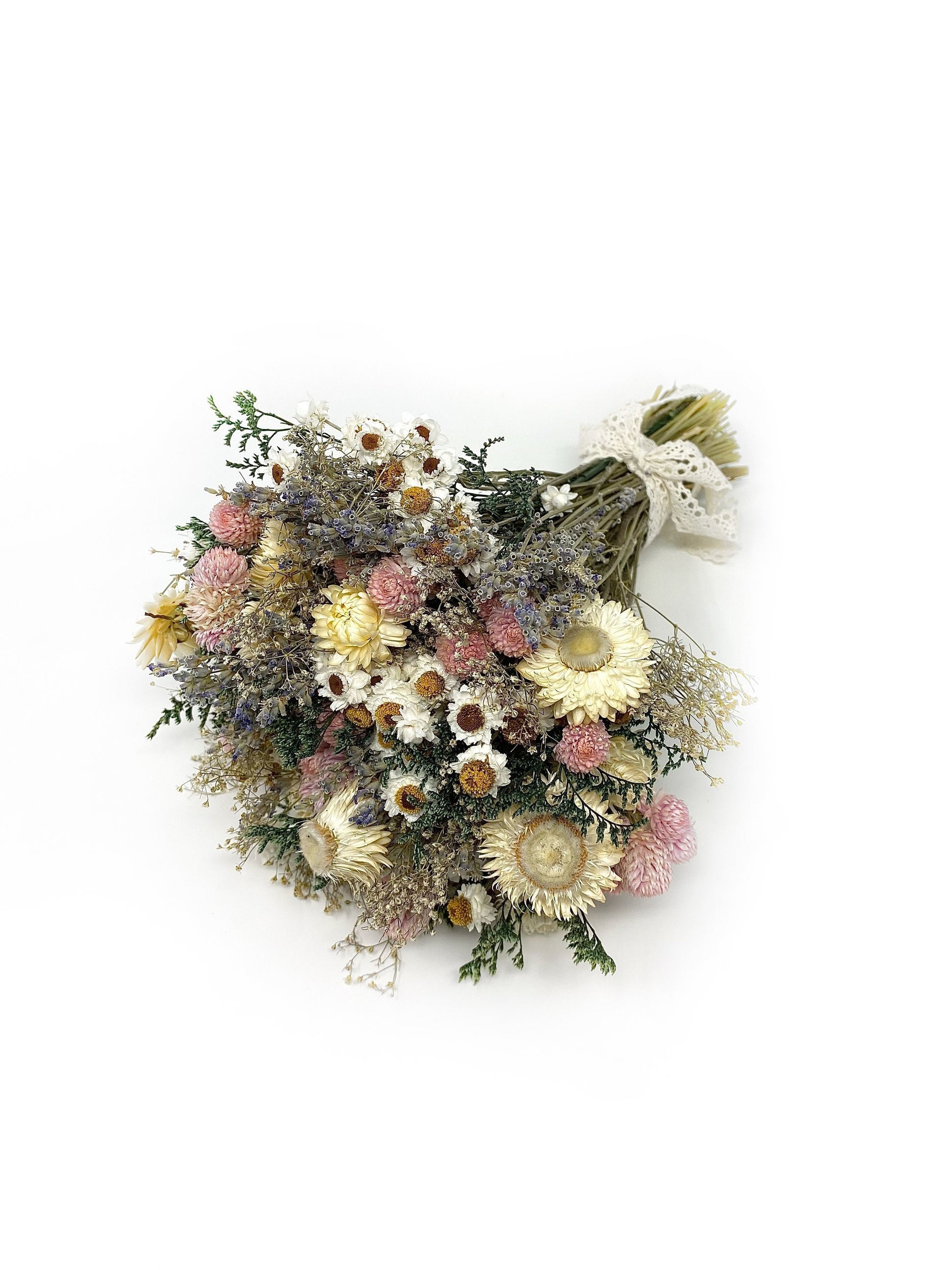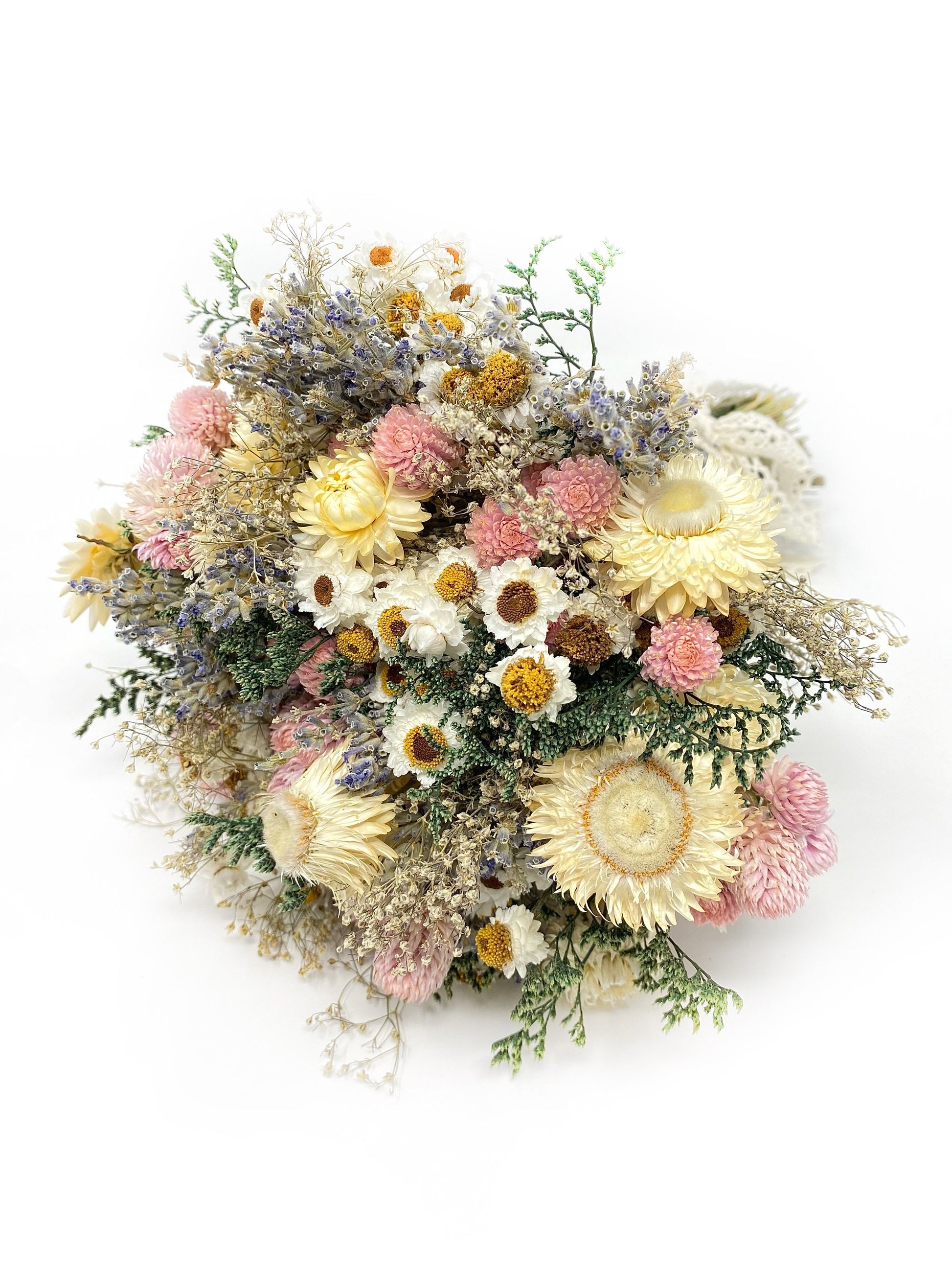 Wedding Bouquet, Dried Flowers, Preserved Floral, Rustic, Ammobium, Bridal, Winter, Throw Bouquet, Spring, Pink and White, Fairy, Lavender