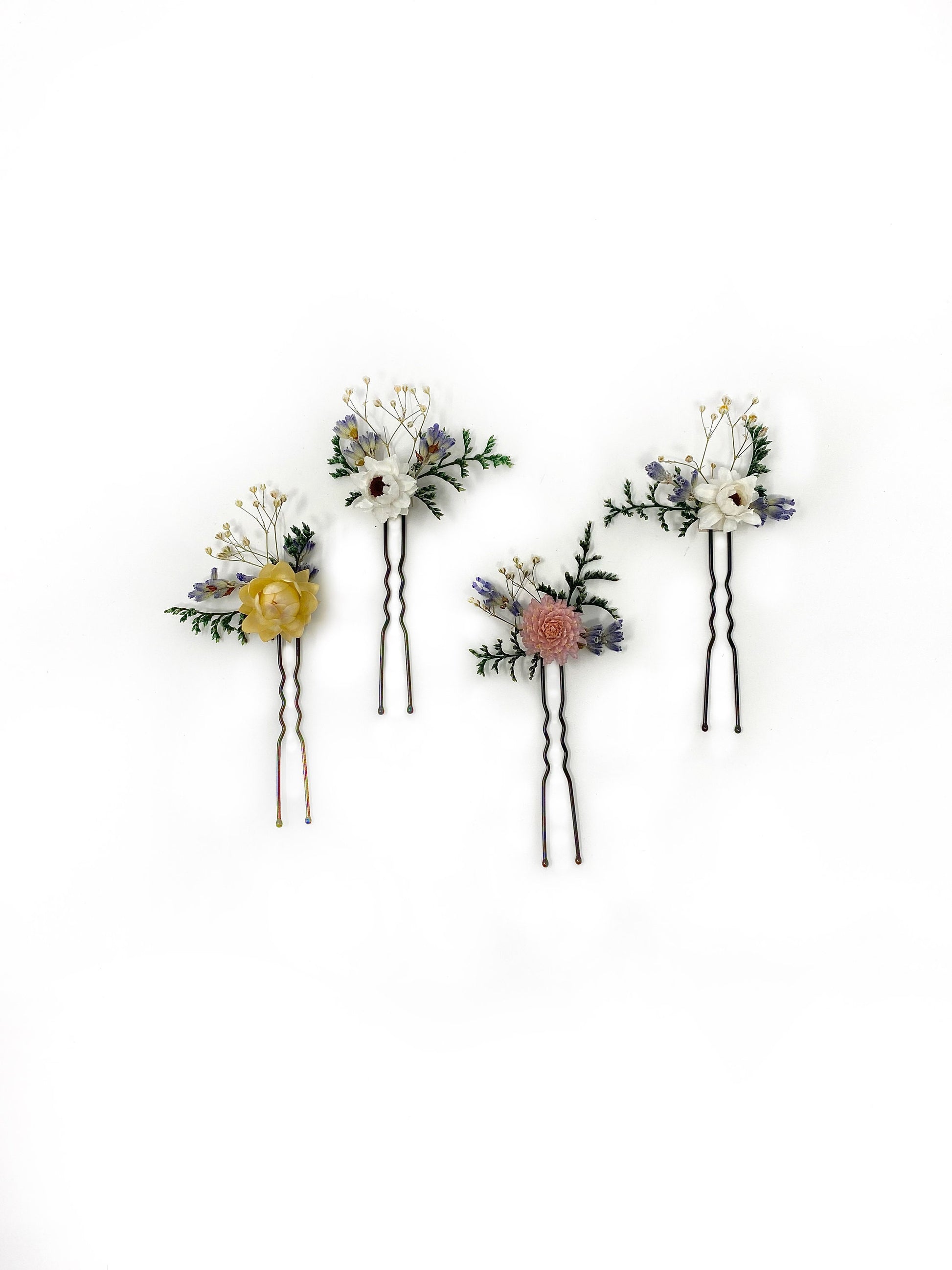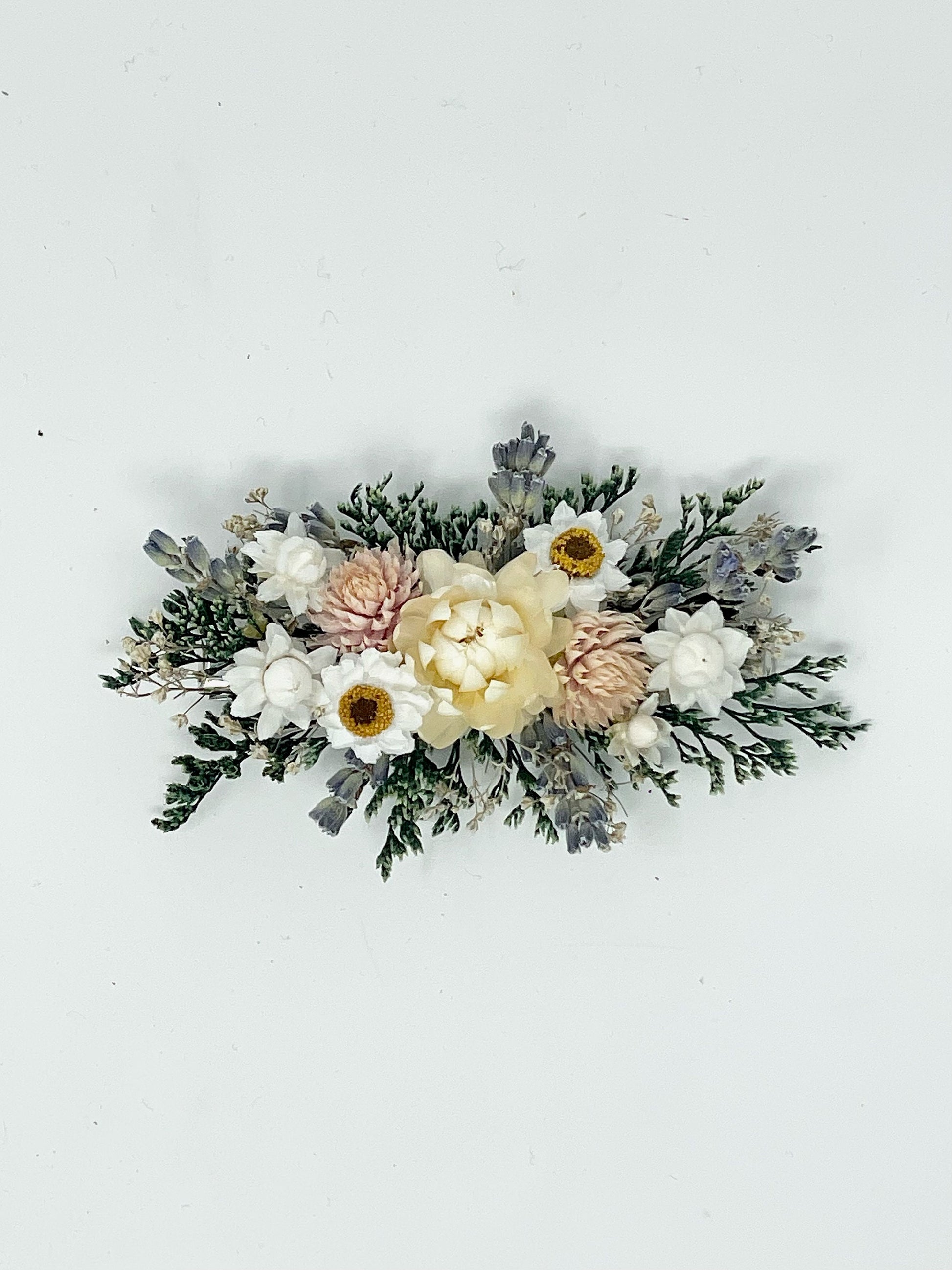 Flower bouquets, corsages, boutonnieres, head wreaths, and hair combs can be slightly different from each other because they are all custom-made.