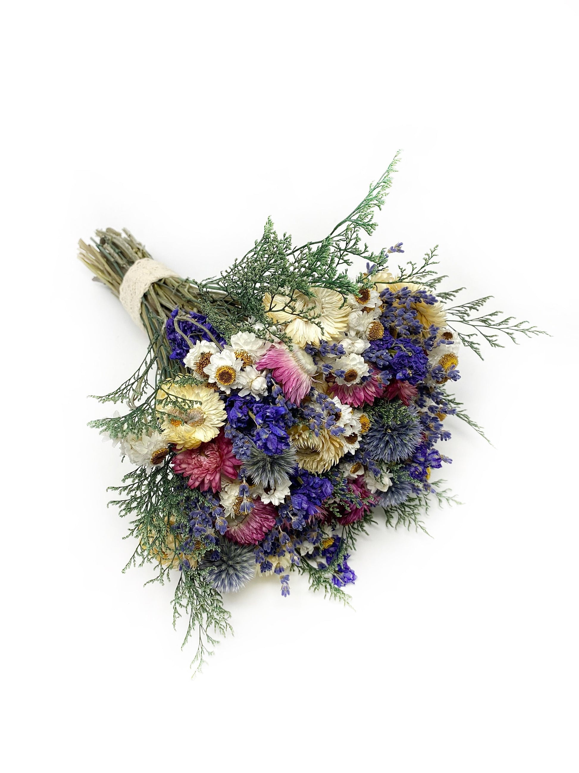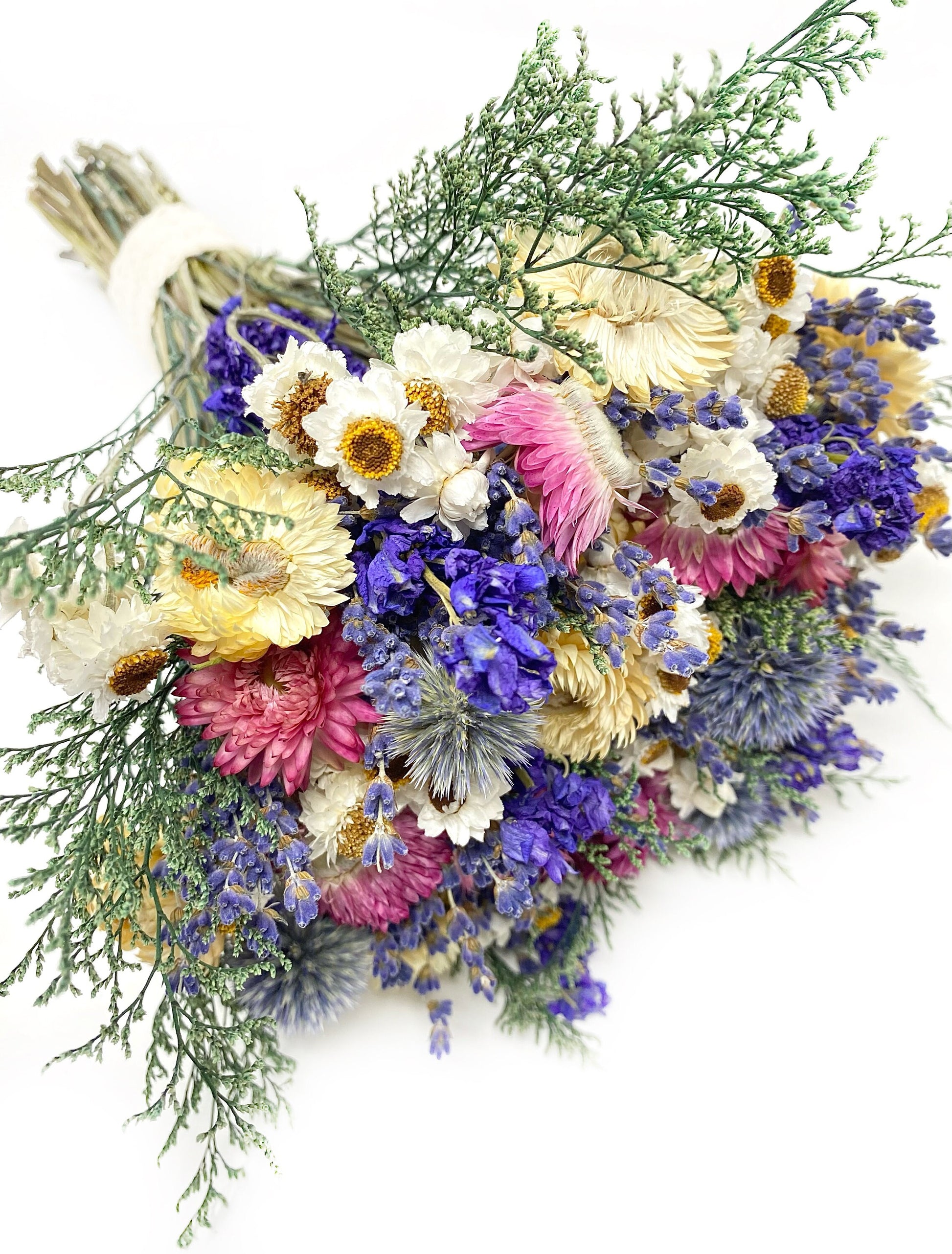 Wedding Bouquet, Dried Flowers, Strawflowers, Bridal, Lavender, Globe Thistles, Preserved Florals, Ammobium, Caspia